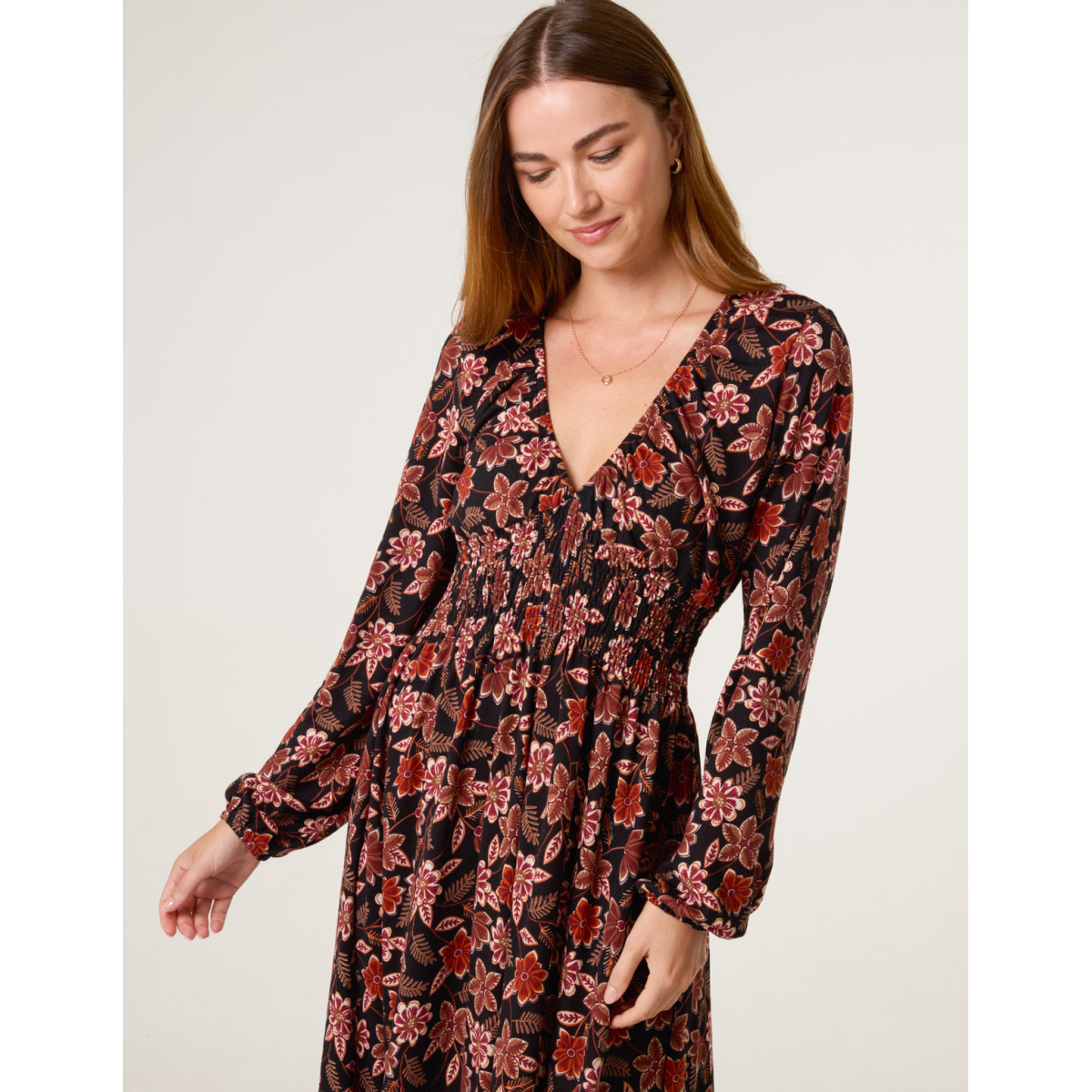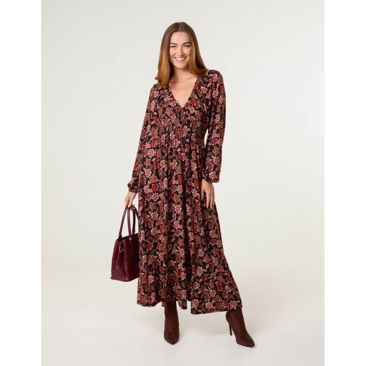 This midi dress adds definition to your AW wardrobe. With its shirred neckline and waist providing flattering definition to your outfit.