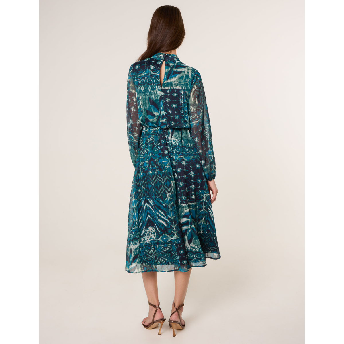 Watercolour Paisley Puffball High Neck Midi Dress