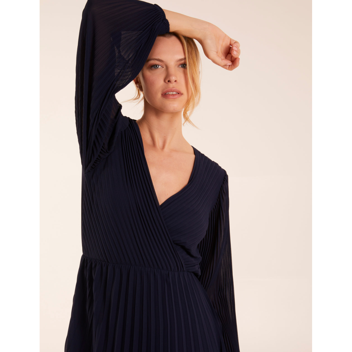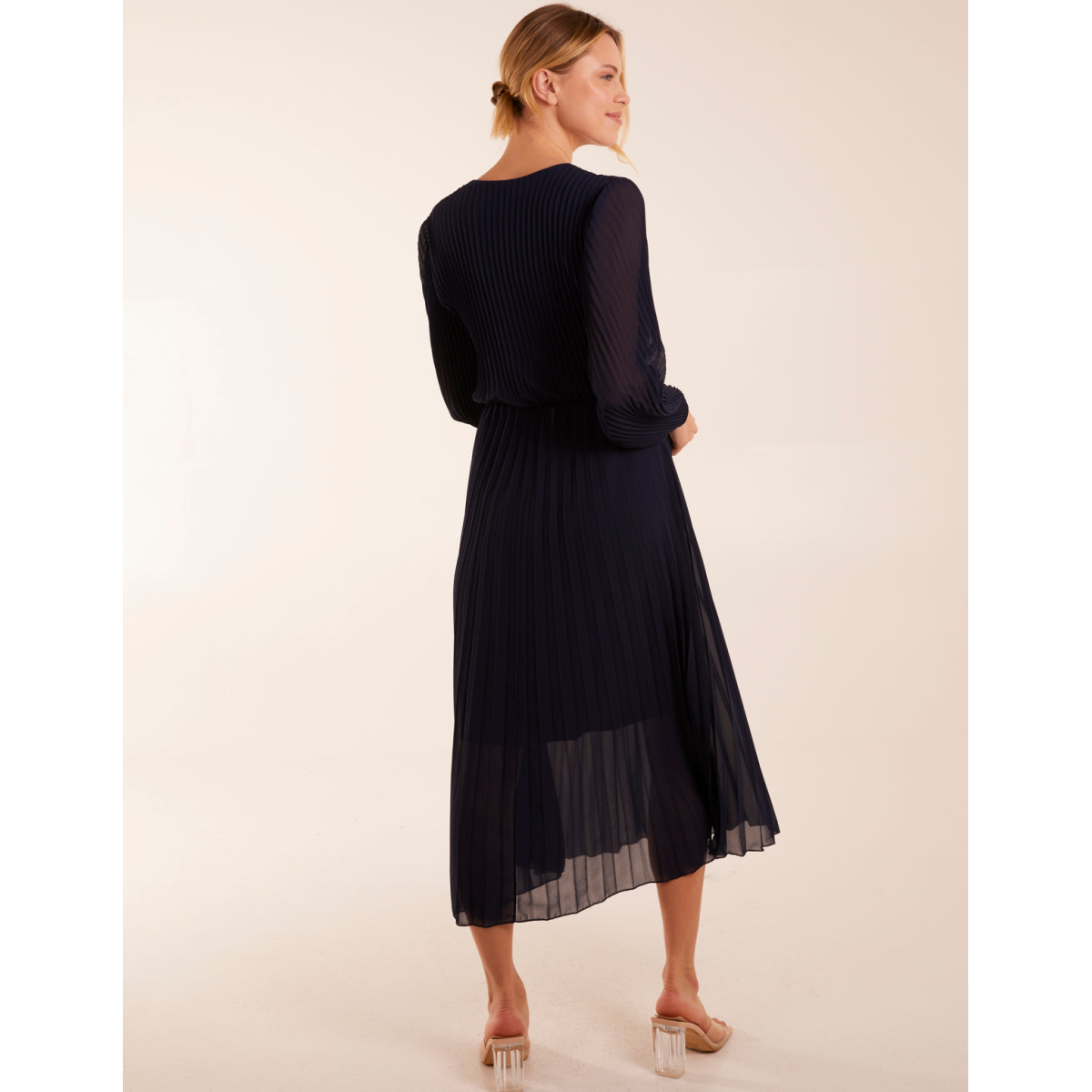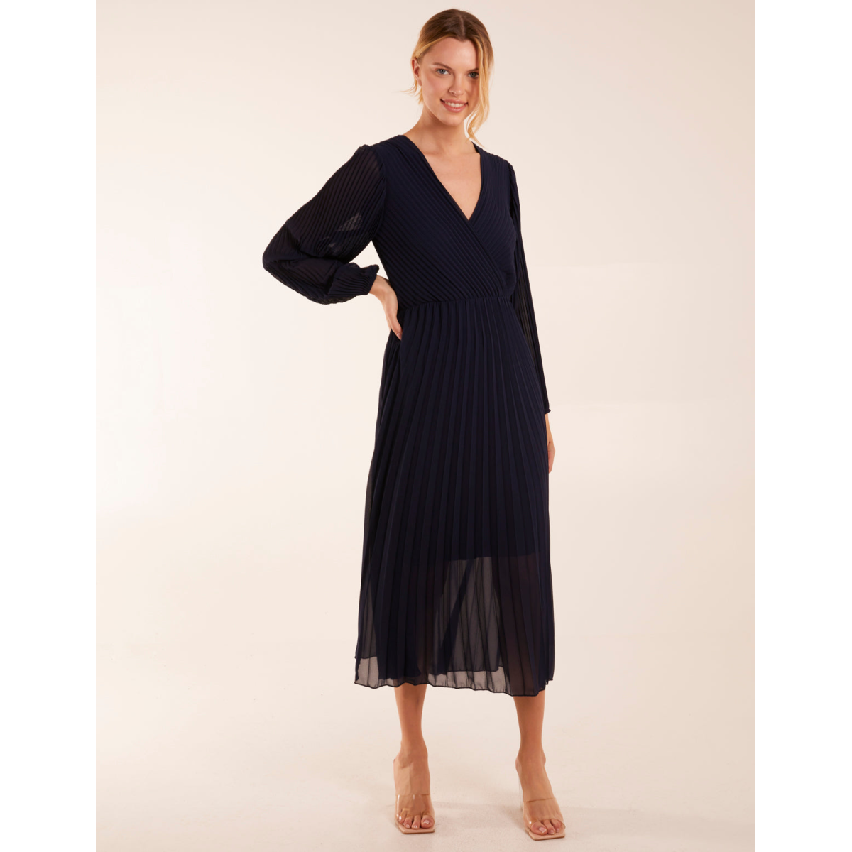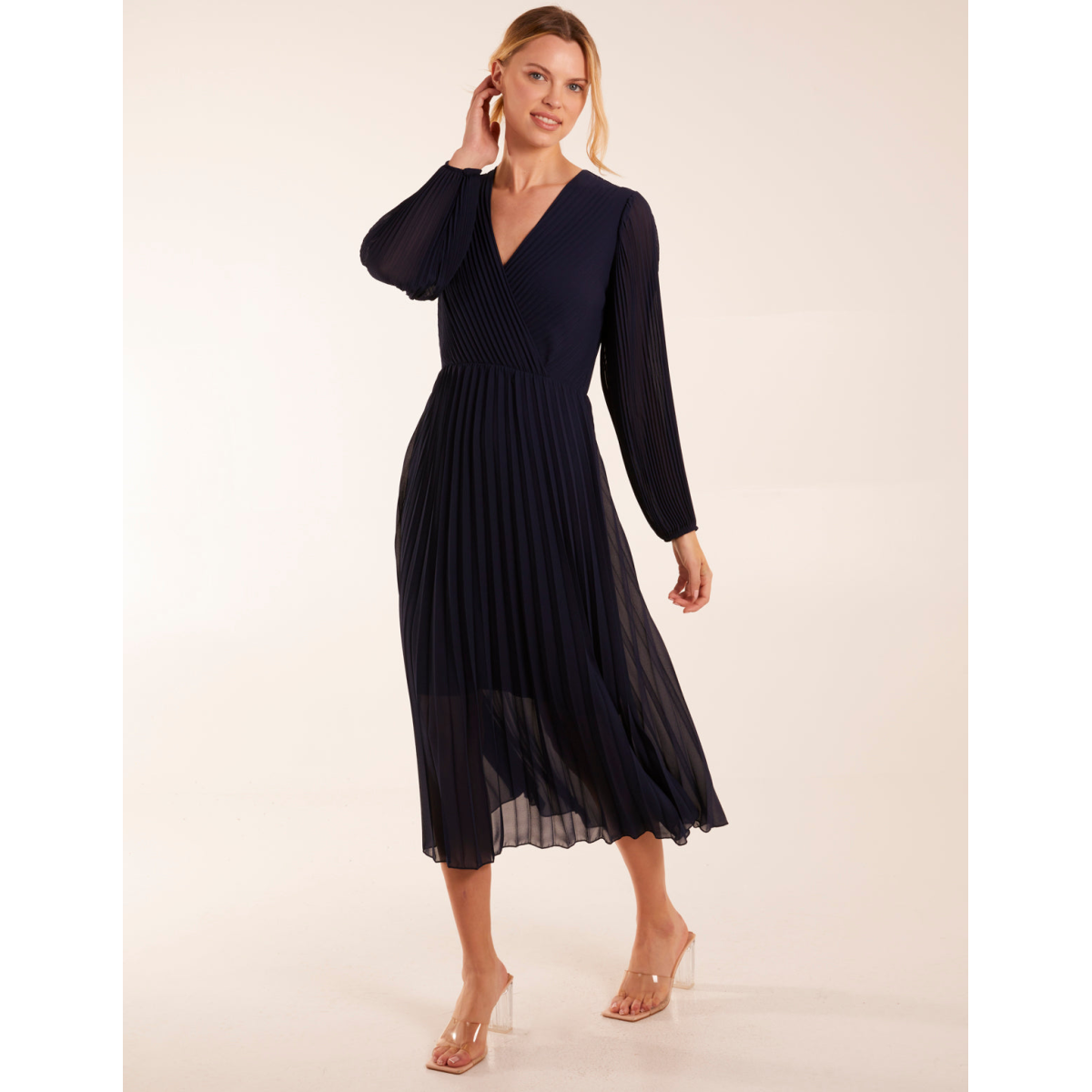 Go for a stylish look with this wrap-front pleated midi dress. Featuring a V neckline and a pleated skirt design to makes it even more elegant. Accessories with fine jewellery and heels for a day in the office.