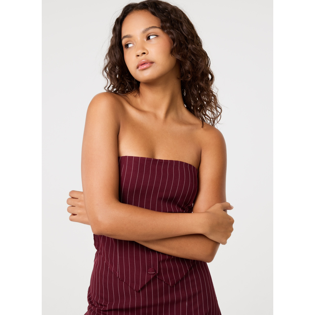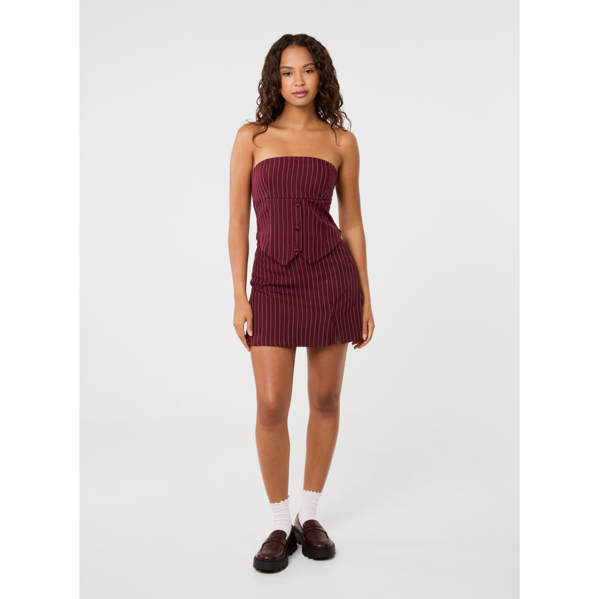 The pinstripe set of your dreams has just landed. Pair this Bustier Pinstripe Button Top with its matching Pinstripe Skort Slit Front Skirt. Finish off the look with chunky loafers for a fancy and trendy 'fit.