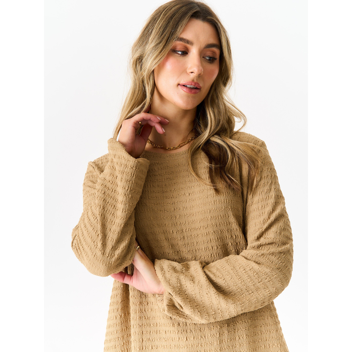 Camel Textured Long Sleeves Oversized Top
