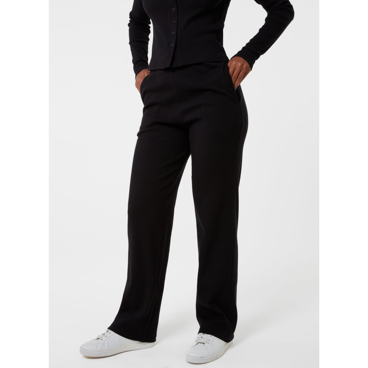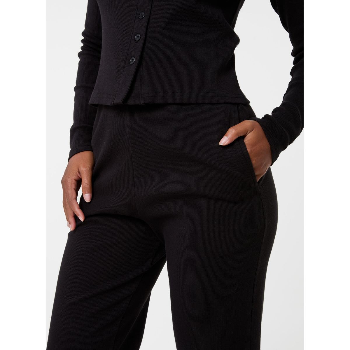 Shop the best loungewear sets on Pink Vanilla. This comfy Wide Leg Ribbed Trousers and Ribbed Button Front Top set will keep you on trend this season.