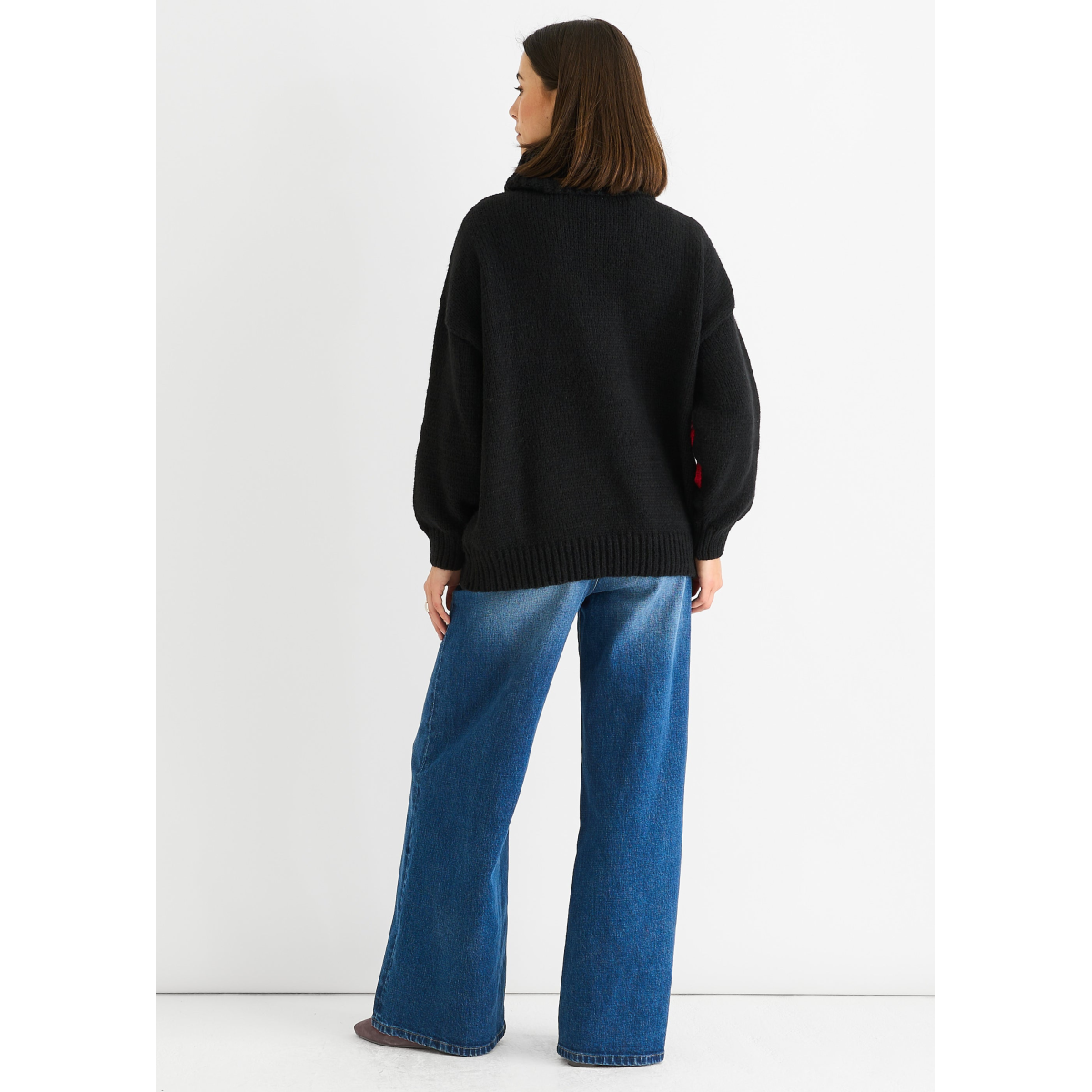 Black Floral Applique Oversized Jumper