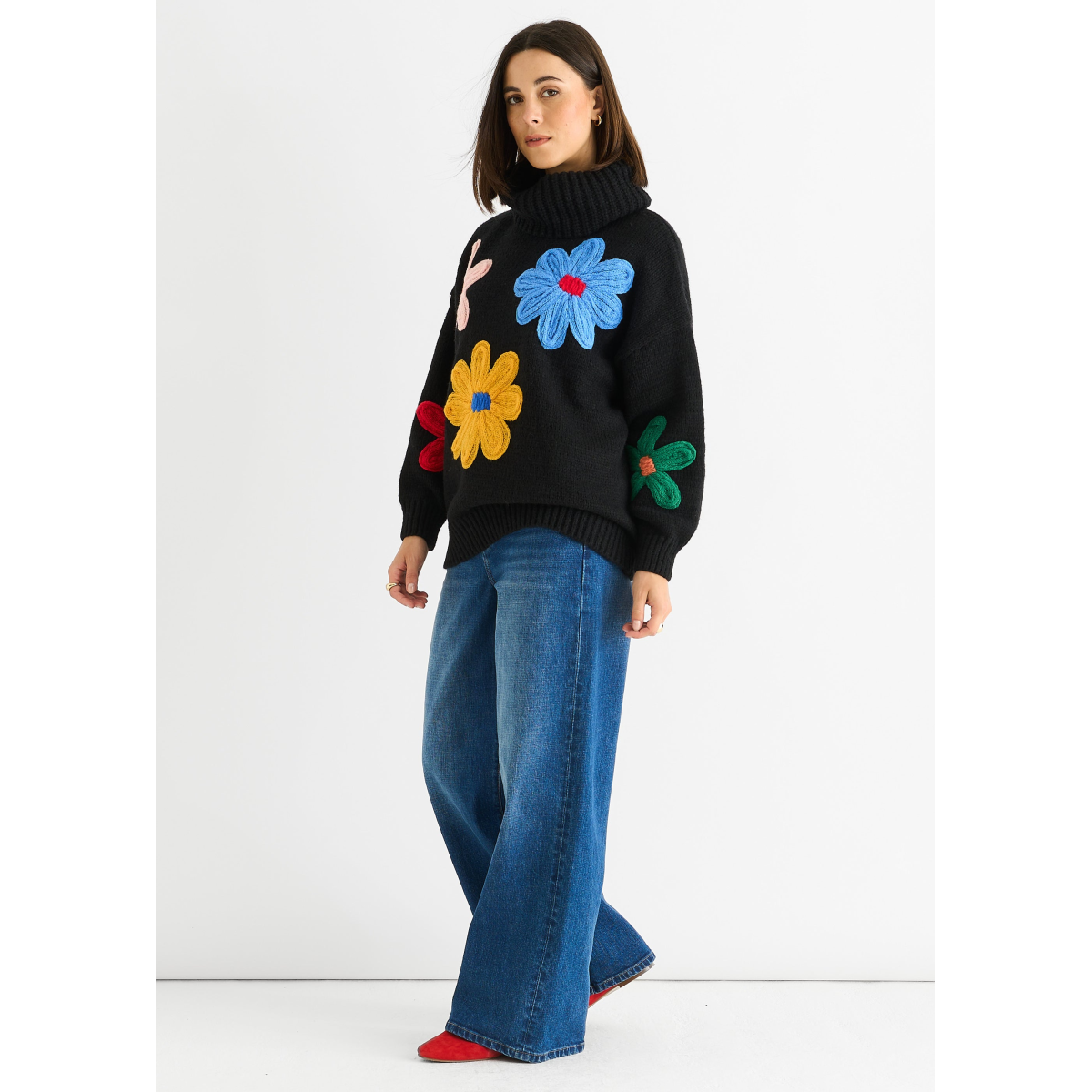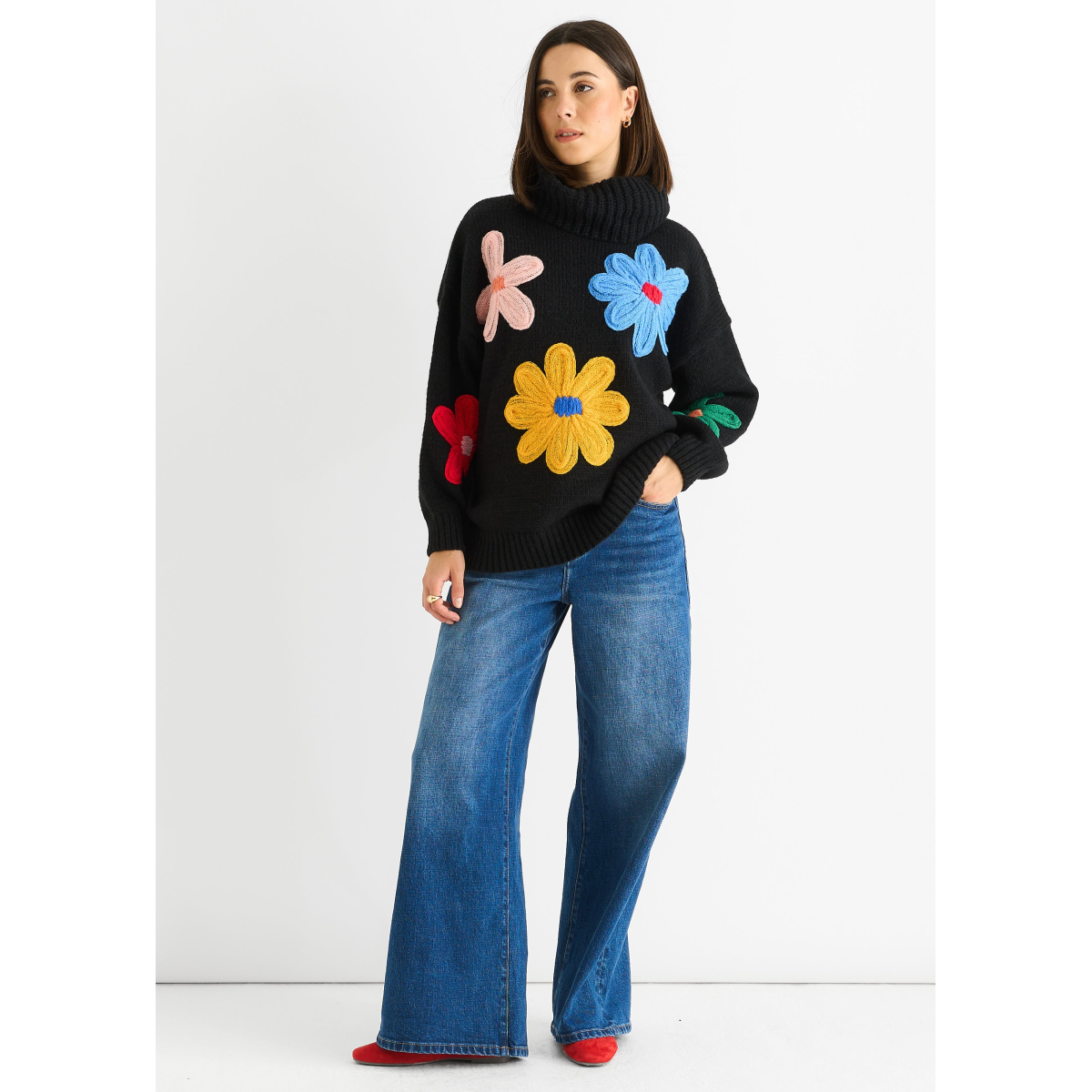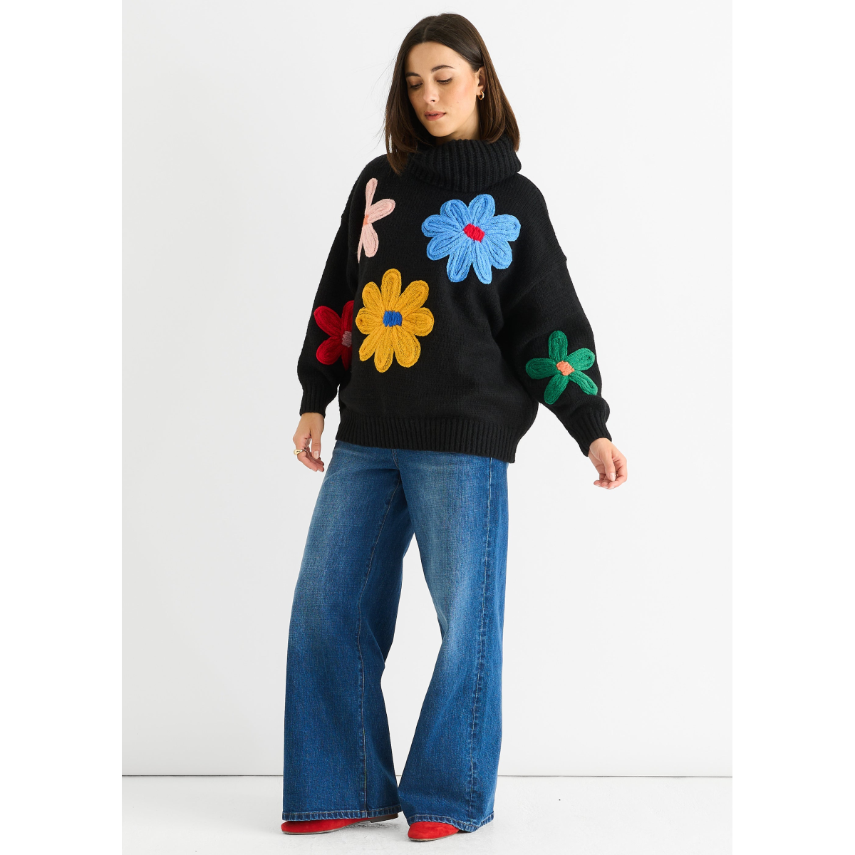 Stay comfortable in style with our Black Floral Applique Oversized Jumper. This stylish jumper features beautiful floral appliques and a relaxed, oversized fit. Perfect for a casual and trendy look.