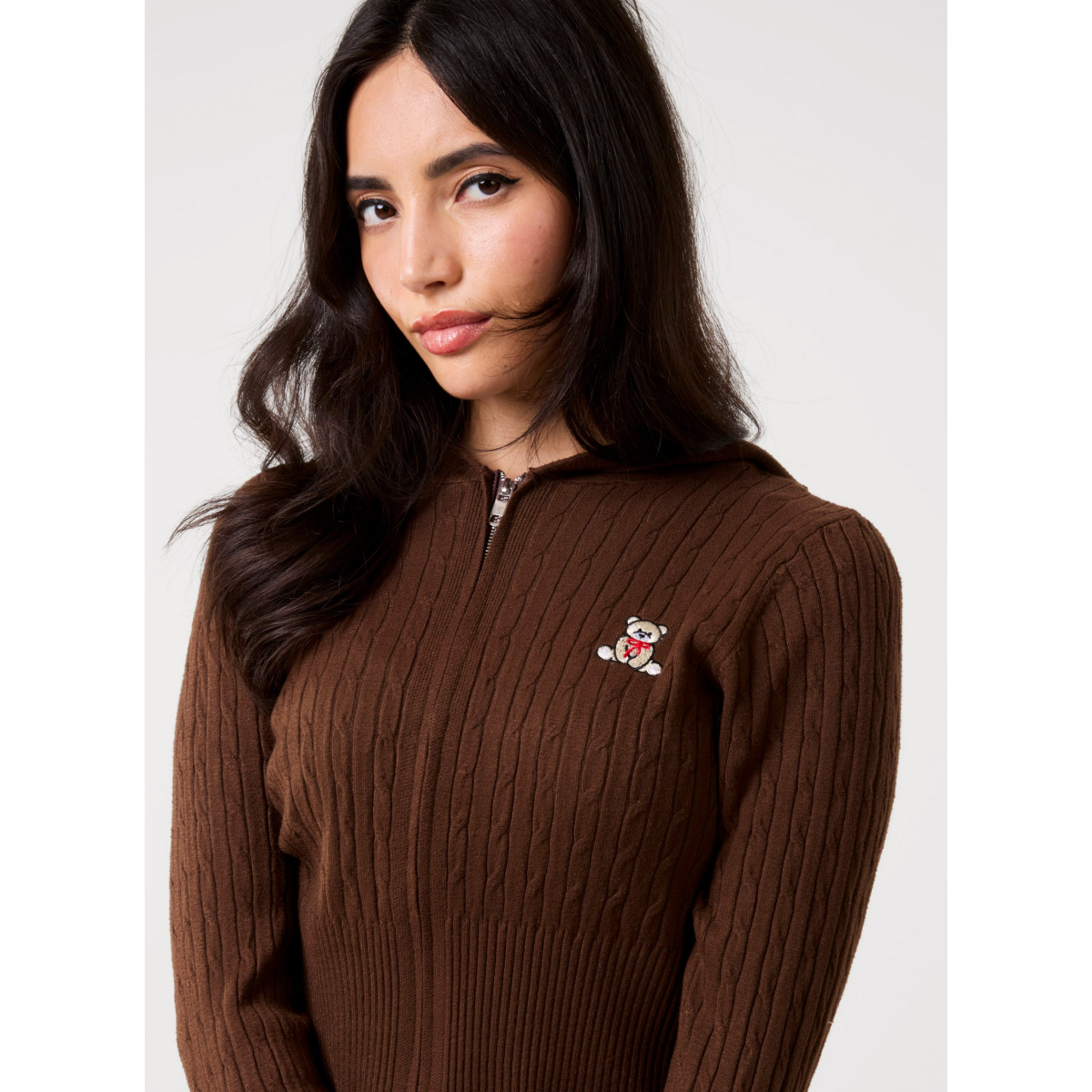 Add a little cuteness to your everyday look with this Cable Knit Bear Hoodie. Featuring a cable texture throughout, a zip fastening, and a lil embroidered bear, this hoodie checks all the boxes.
