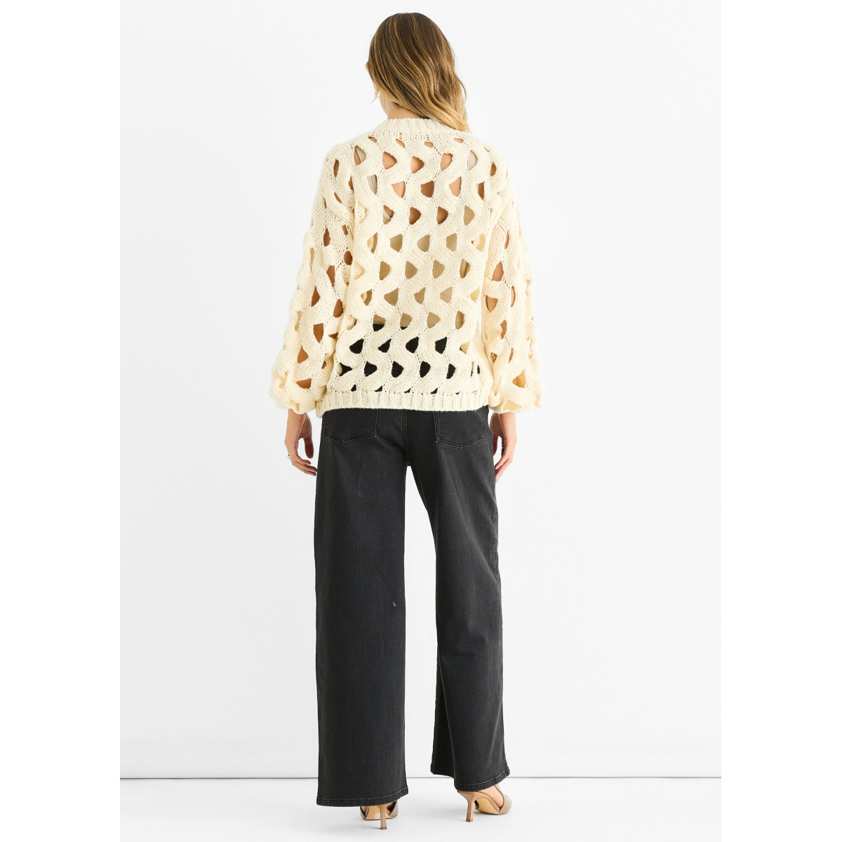 Cream Hollow Chunky Knit Cardigan