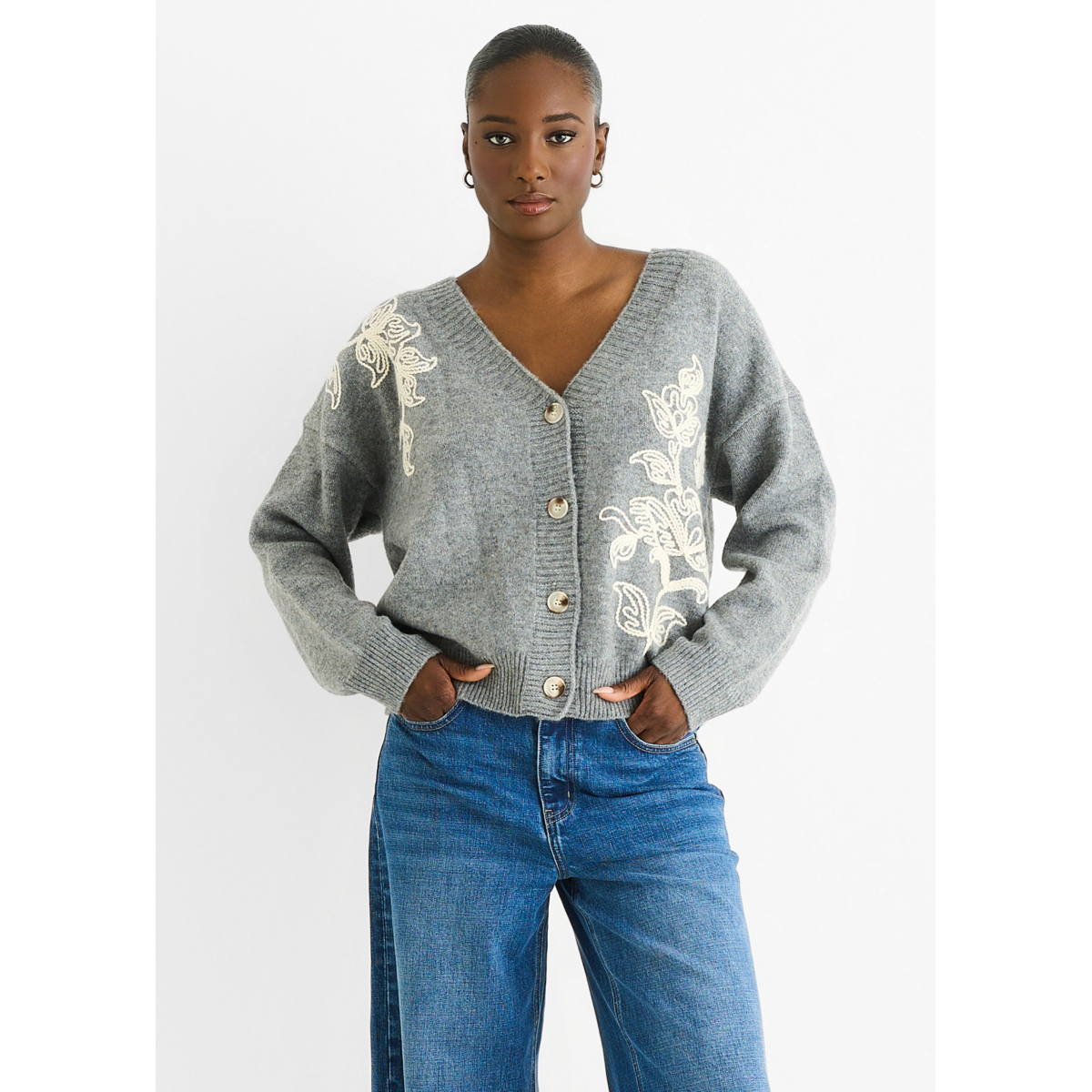 This Grey Floral Appliqué Wool Mix Cardigan offers a perfect blend of comfort and bold style. Crafted from a soft wool mix, it keeps you warm while the striking floral appliqué adds a creative edge to your casual wardrobe. Ideal for those who want to stay cozy without compromising on standout fashion.