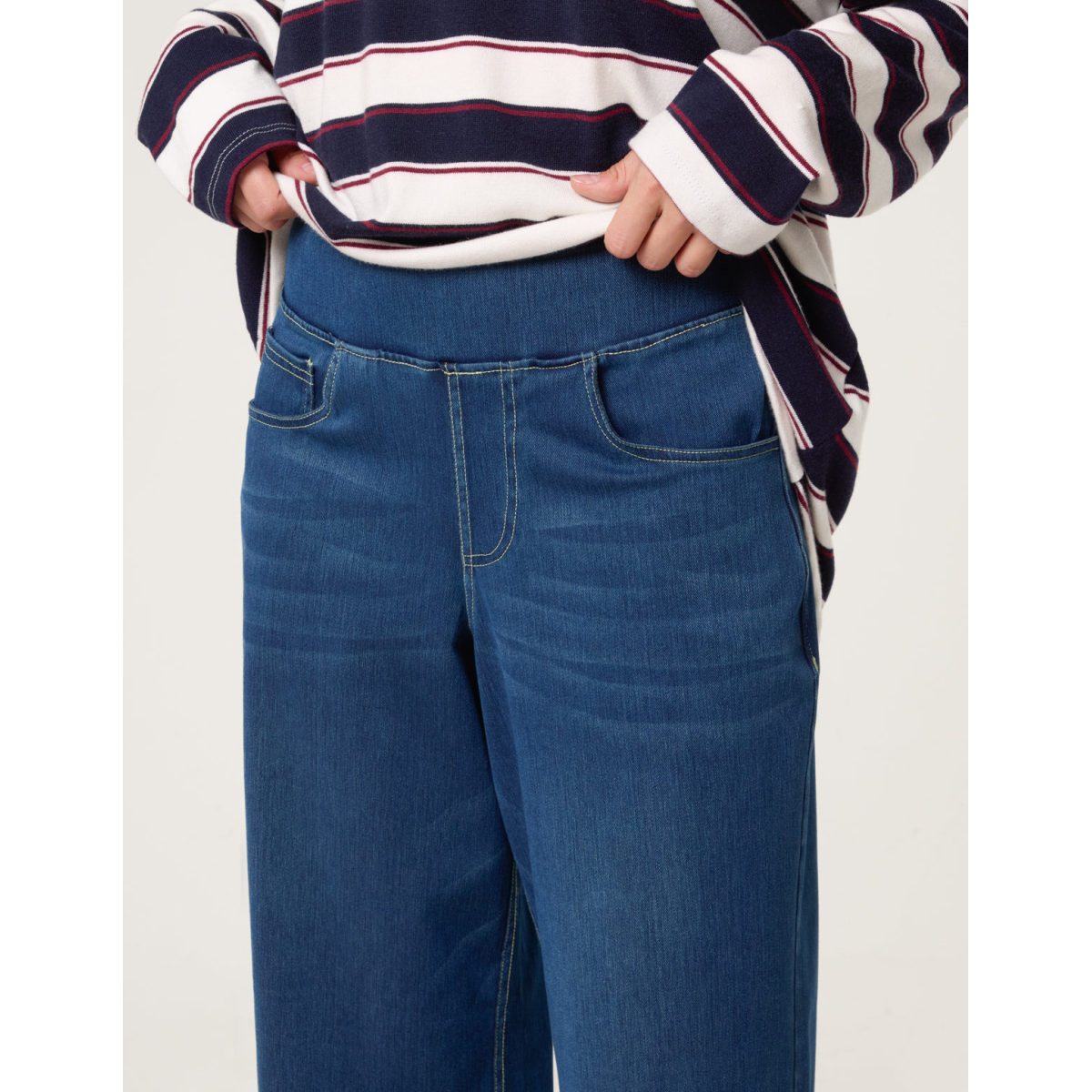 These denim trousers will make a comfy addition to your wardrobe thanks to the stretchy finish, relaxed fit and wide legs.