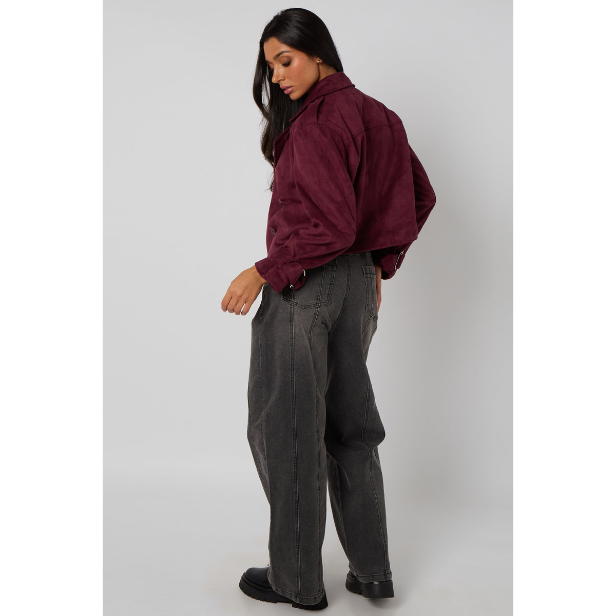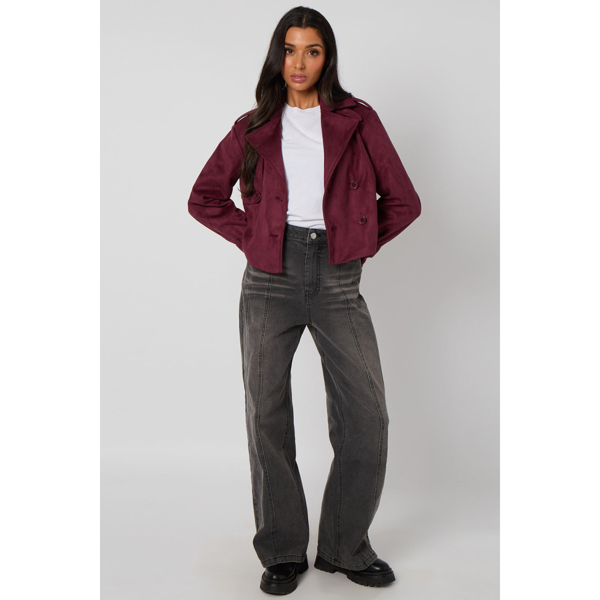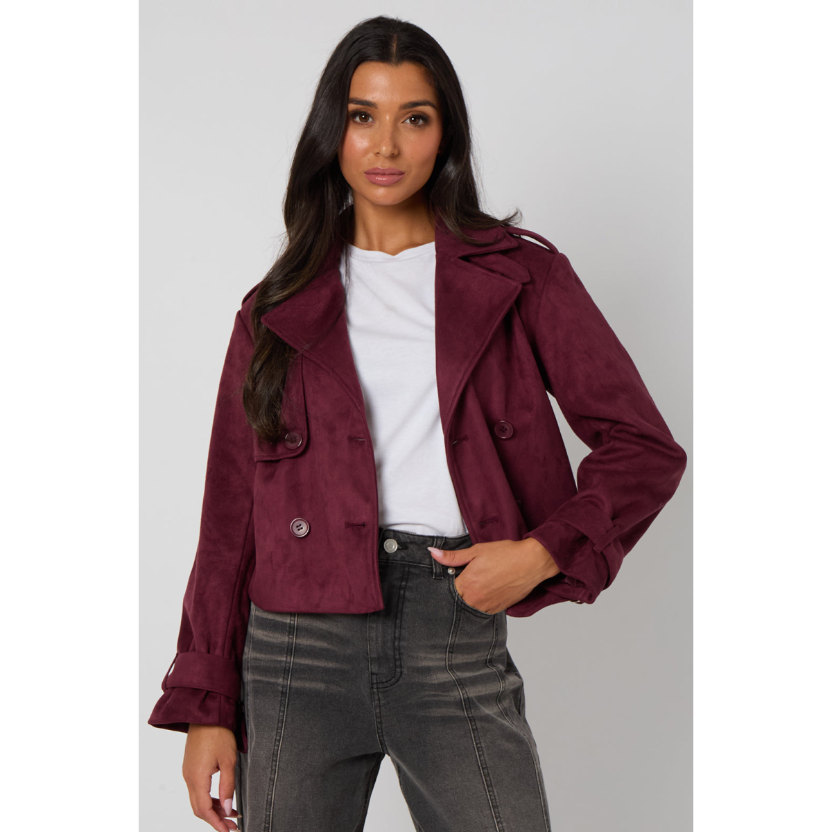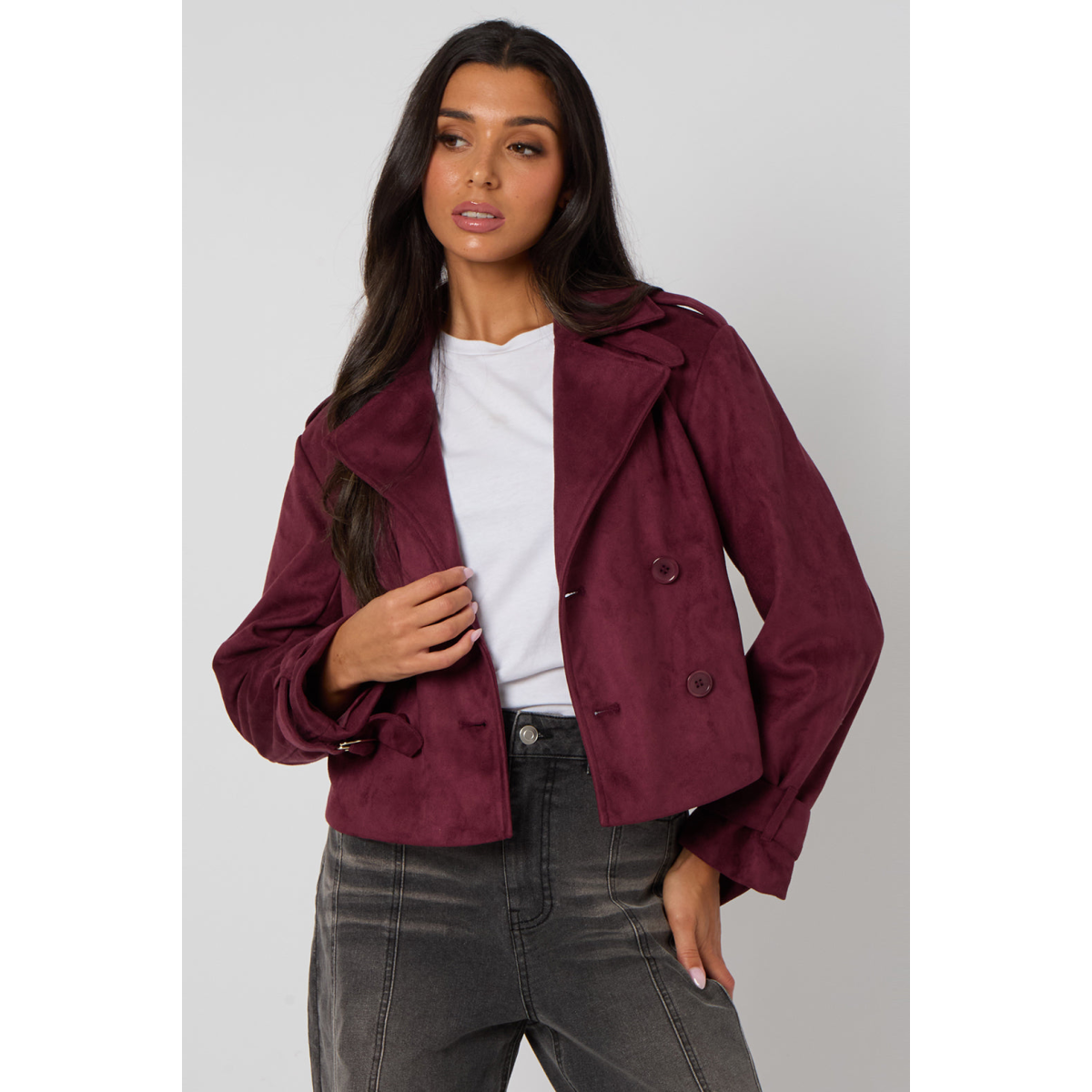 Plum Cropped Suede Trench
