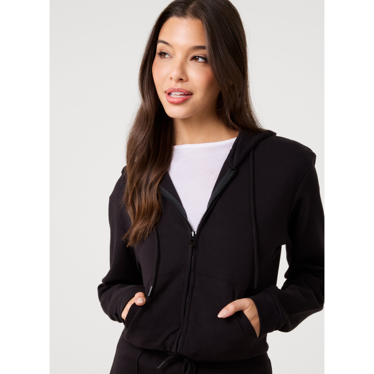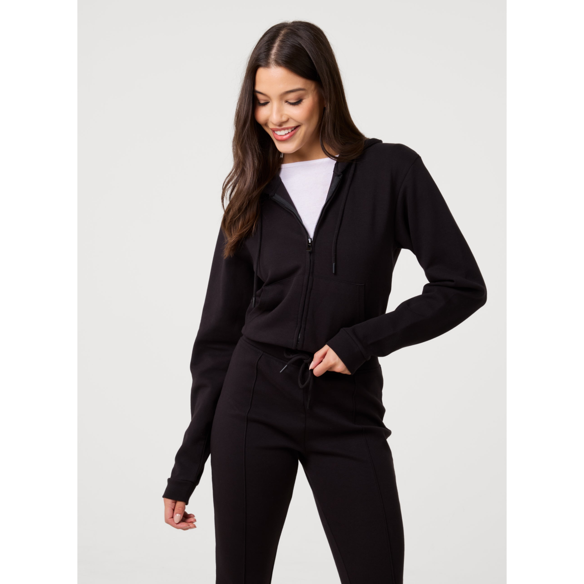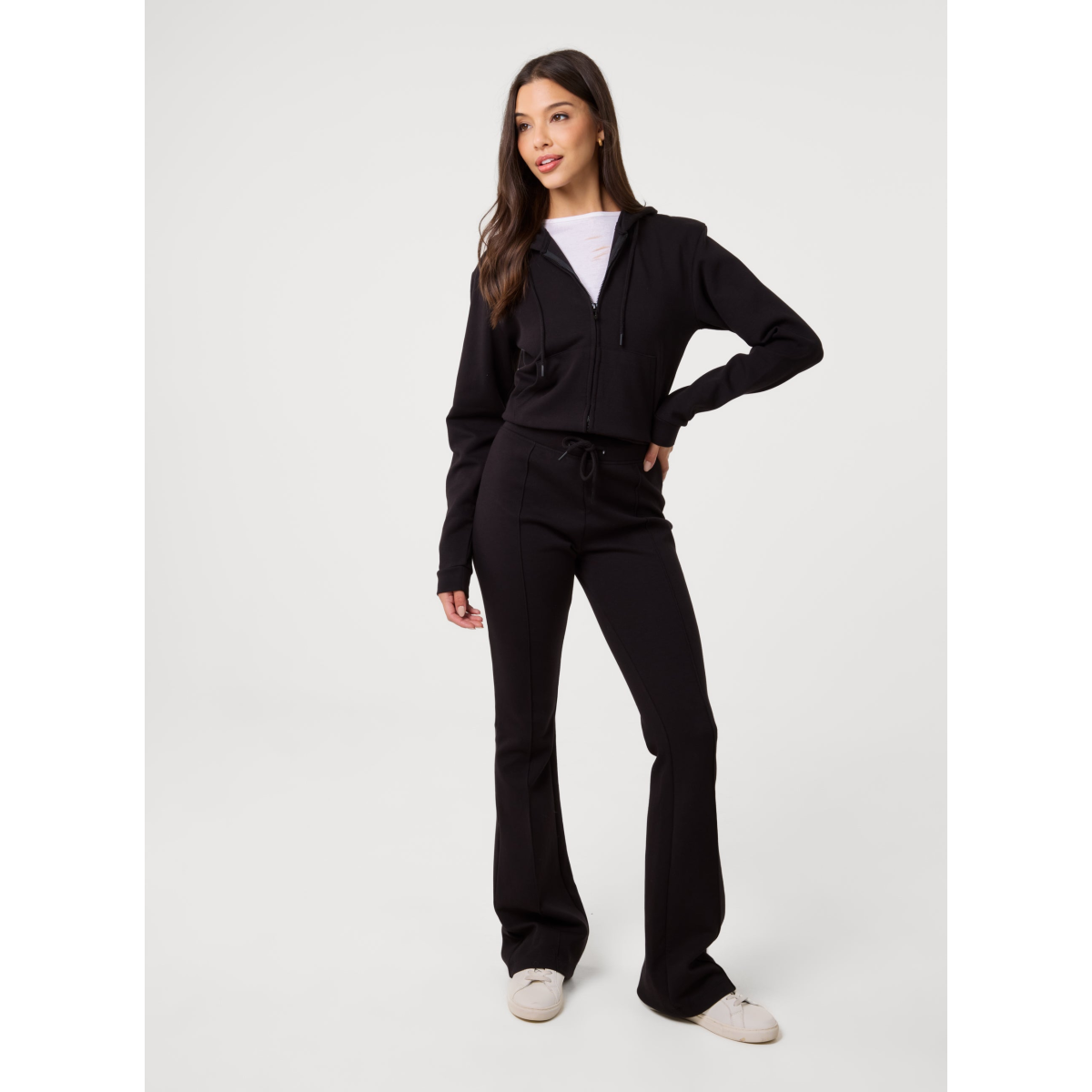 Combine comfort and style with this Zip Up Cropped Hoodie and  Pin Tuck Jersey Flares set by Pink Vanilla.