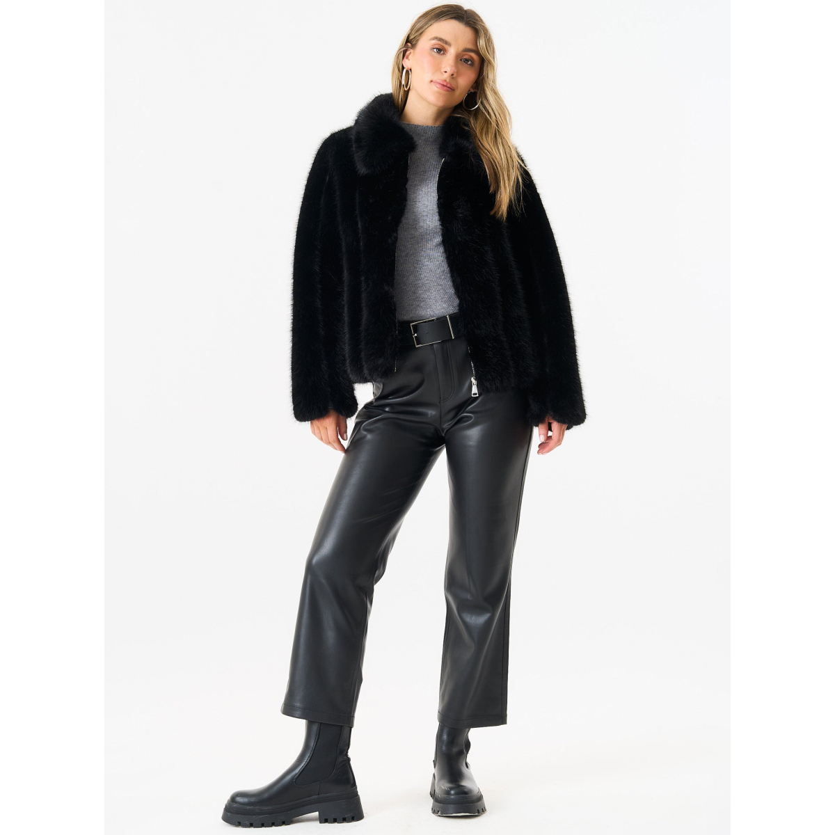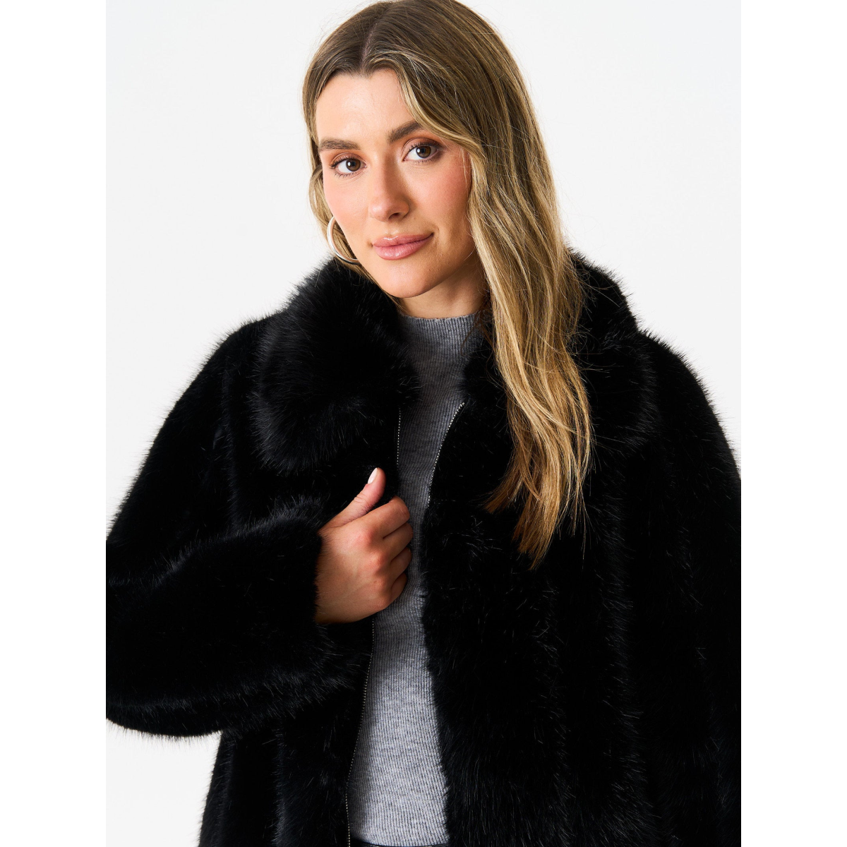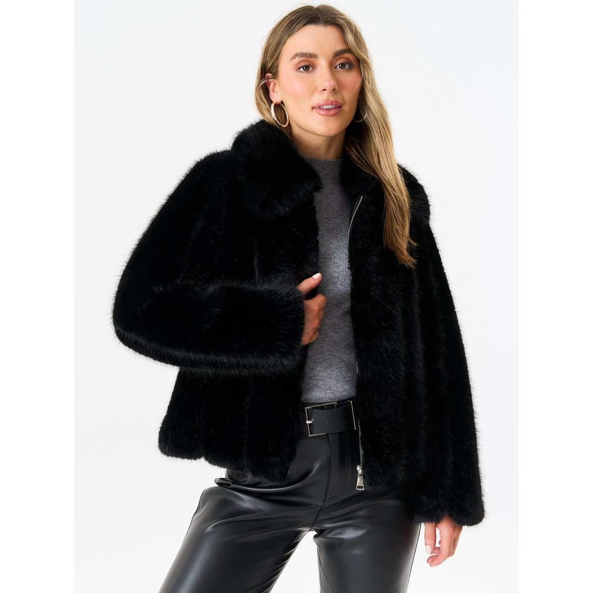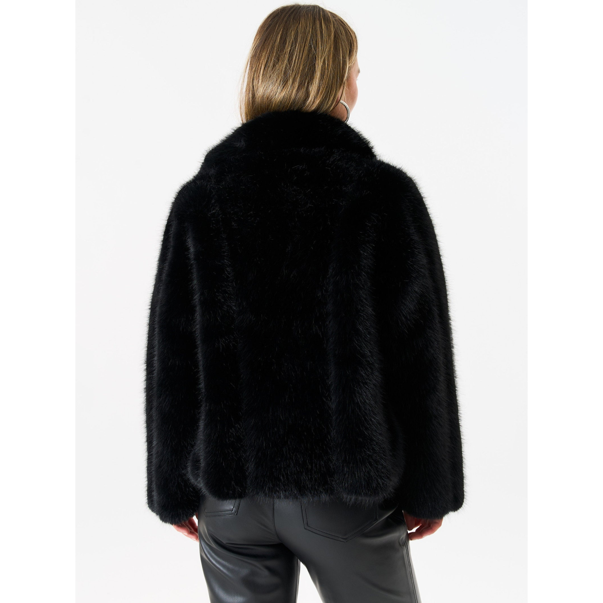 Black Zip Front Faux Fur Short Jacket