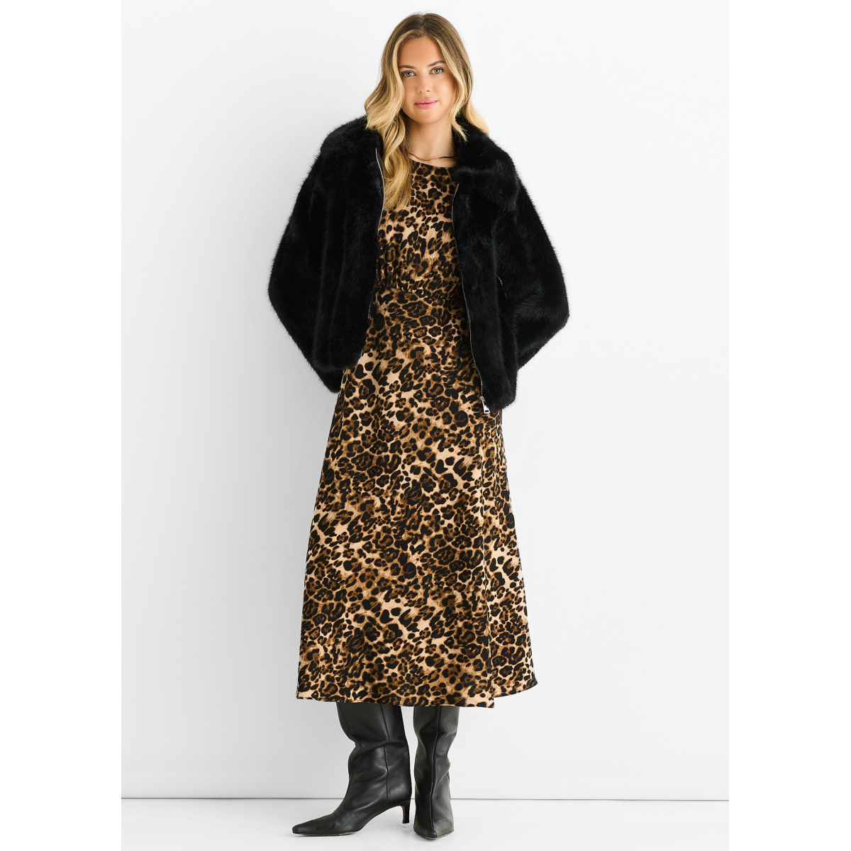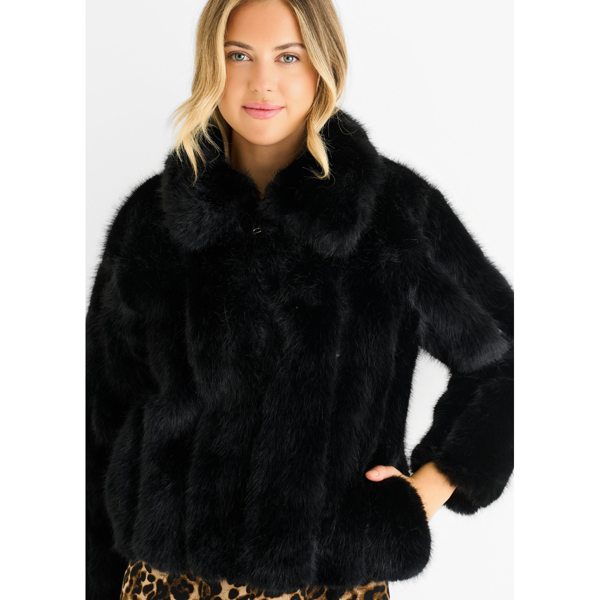 Elevate your style game with our Black Zip Front Faux Fur Short Jacket. Featuring a chic and sleek design, this jacket is the perfect addition to any fashion-forward wardrobe. The zip front and faux fur add a touch of luxury and sophistication, while providing warmth and comfort. Upgrade your outerwear with this must-have piece.