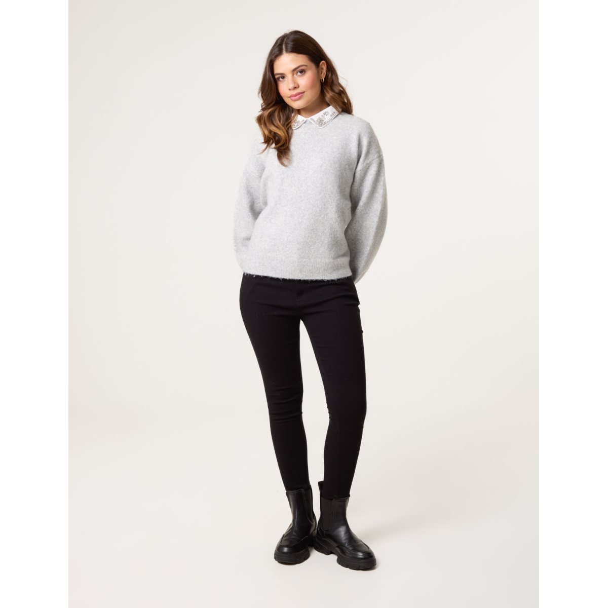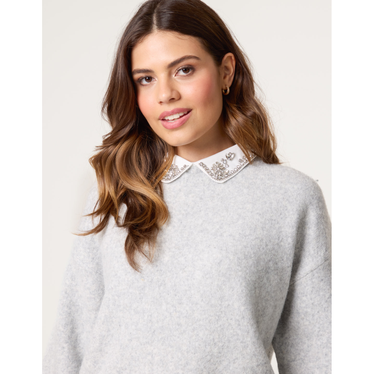 This collar detail jumper is the perfect piece to elevate your workwear knitwear collection. Simply team with tights and a PU skirt, and pumps and be ready to take on the working day in style.