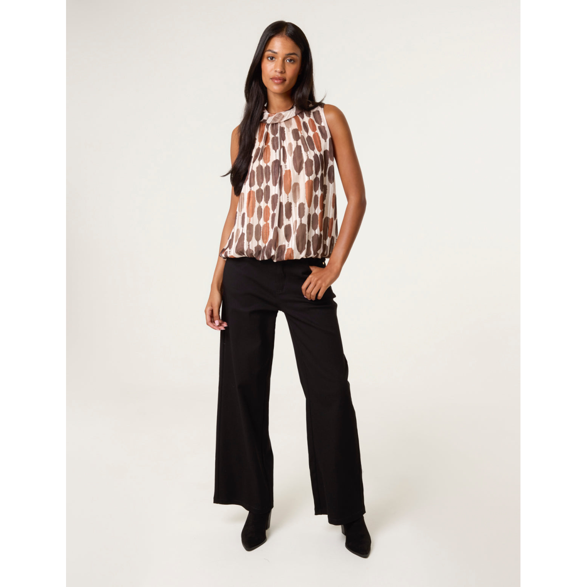 This sleeveless puffball blouse is a smart and stylish staple for putting together looks. Inside: