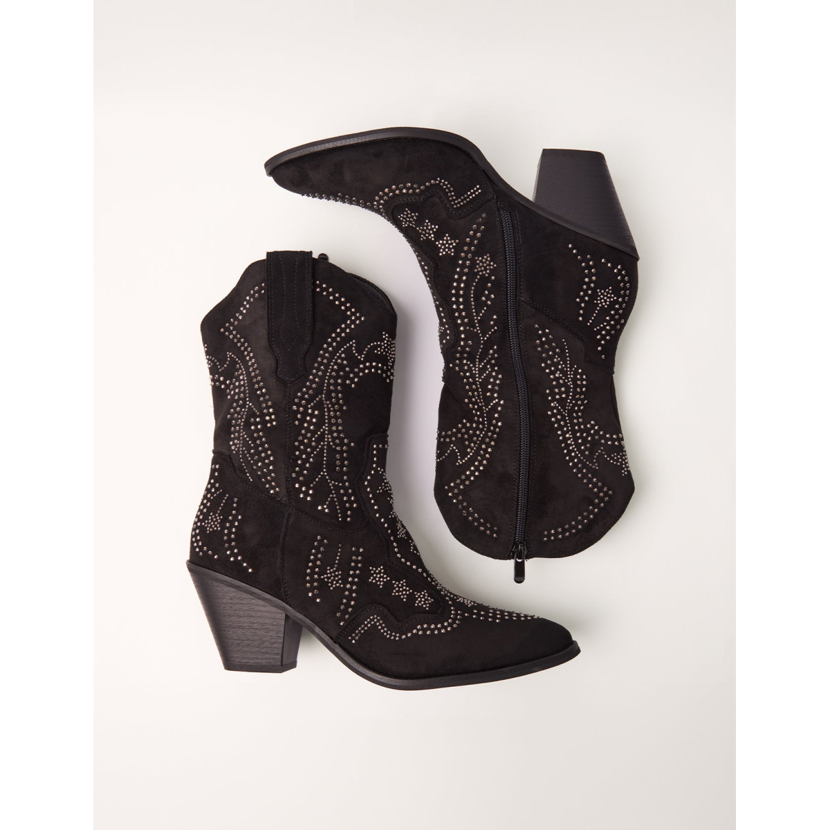 Step into the wild west with these eye-catching diamante detailed cowboy boots. Footwear that keeps you looking trendy each and every season without fail.